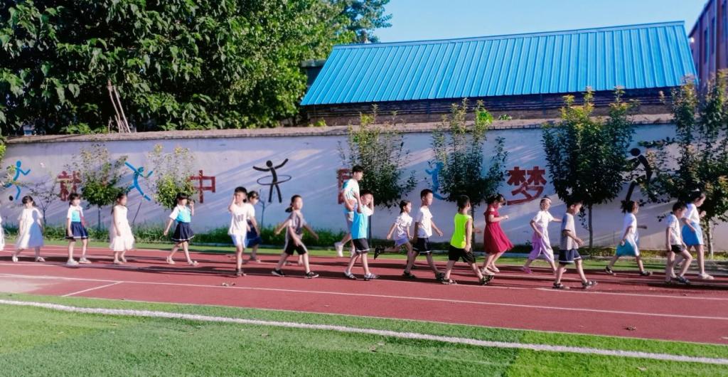 烈日炎炎下,尽管大家都已汗流浃背,但依然很快乐。在偌大的体育场上,孩子们跑着,跳着,呐喊着,笑着。大家在操场上踢着球,在篮球场上打着篮球,玩着游戏,做着丰富多彩的体育活动。美好的时光总是短暂,为防止孩子们因为气温过高而中暑,最后,志愿者们在操场上组织各班级集合,带领孩子们有序回到班级补水乘凉。