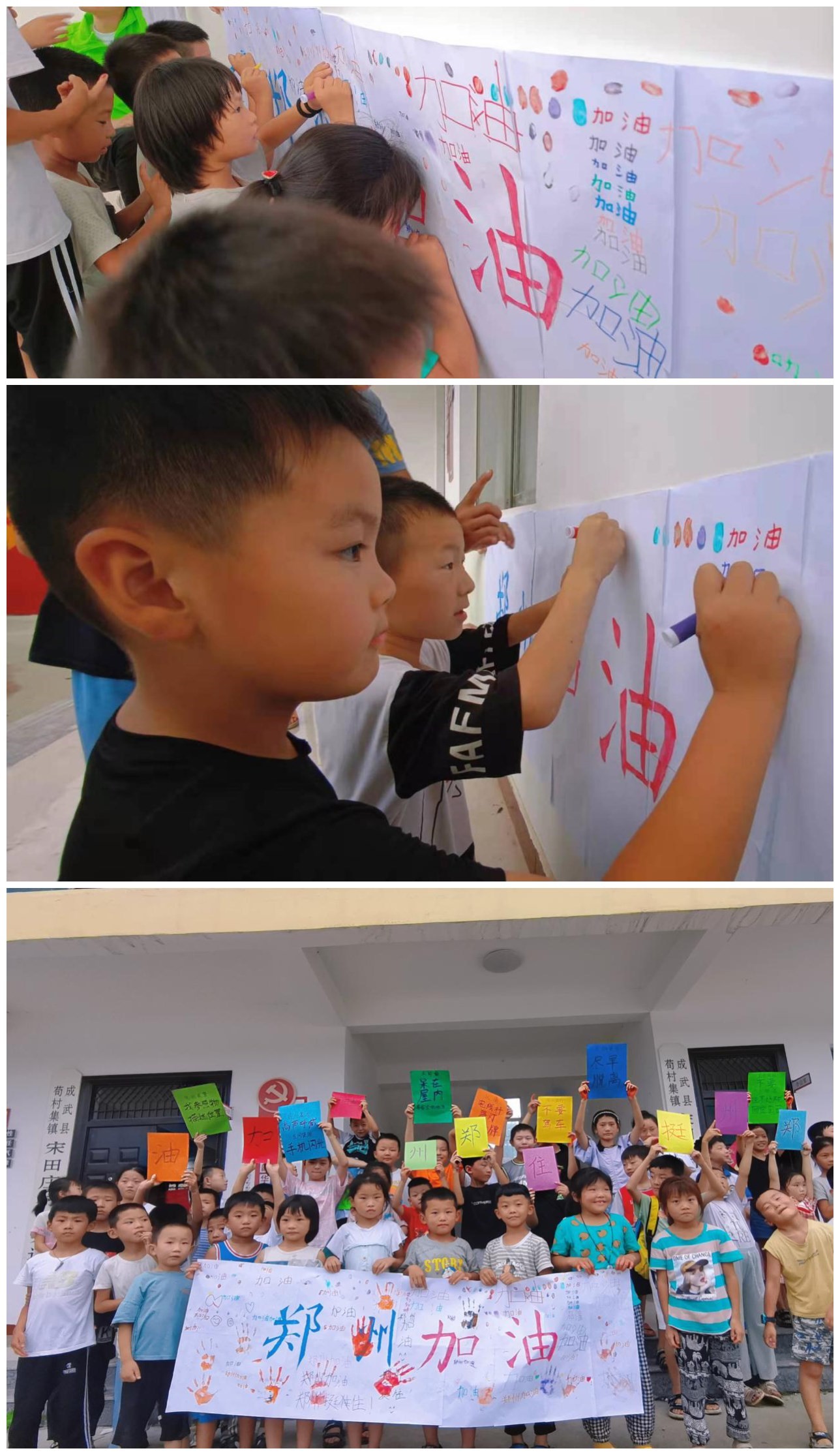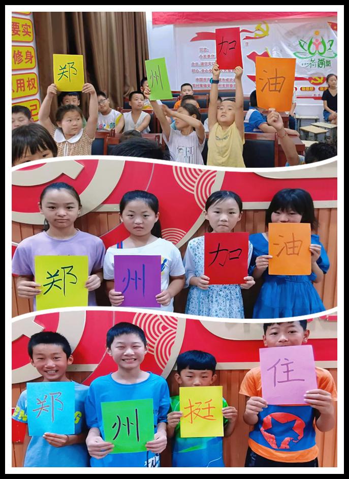 2021年7月21日,经济管理学院“青春同心,健康相伴”社会实践队在苟村集镇宋田庄村带领小学生开展了“为郑州加油”的活动。这次活动不仅让孩子们关注到时事新闻,更是让孩子们受到全国上下众志成城帮助河南抗灾的熏陶,培养了团结意识,增强了爱国情怀。