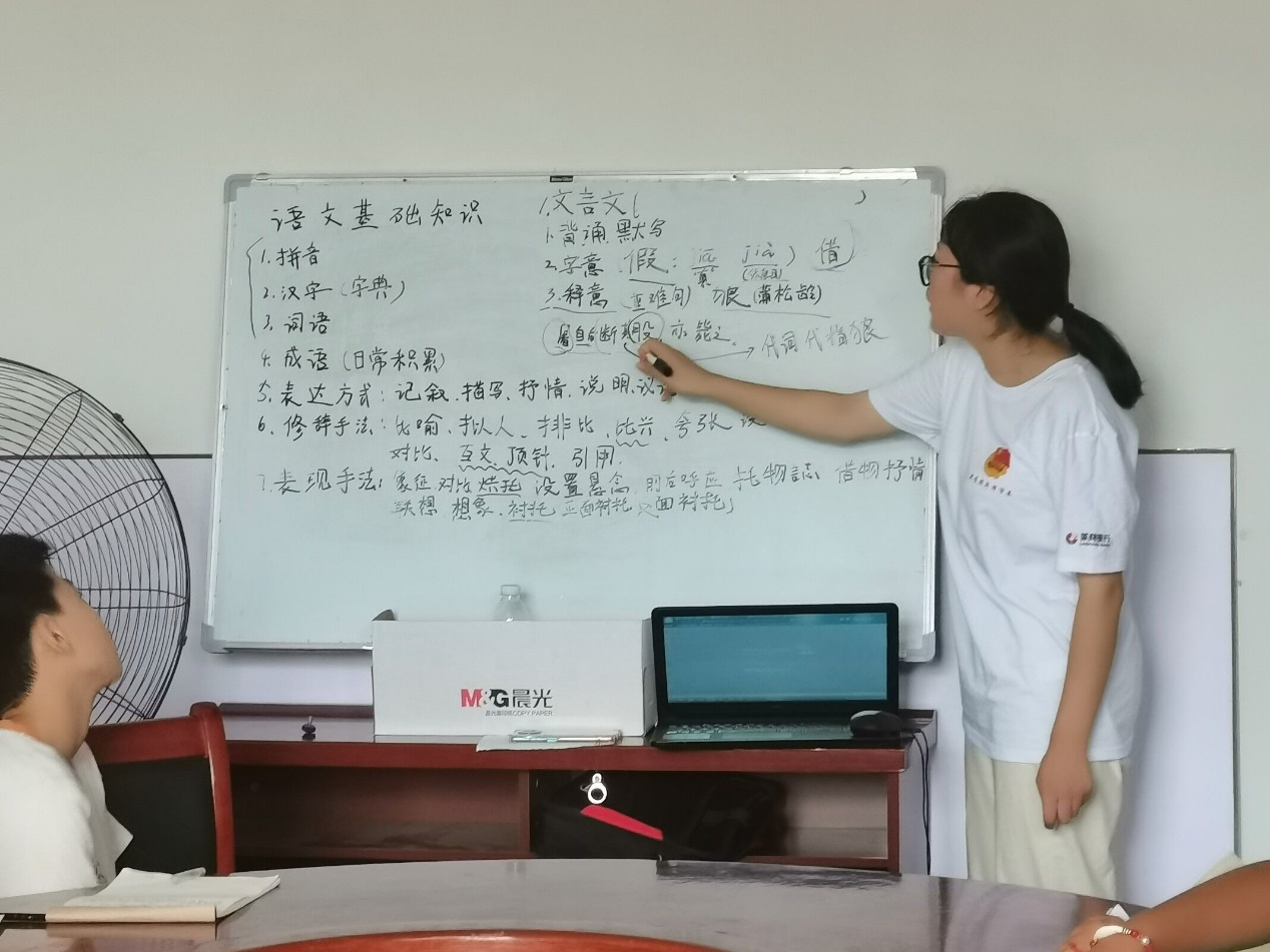 在课程设置上,志愿者结合当地儿童的学习情况、作息规律等,制定了符合身心发展的教学安排。在语文、数学、英语等基础课程之外,开展美术、手工、音乐等素质拓展课,将思政元素融入教学全过程。