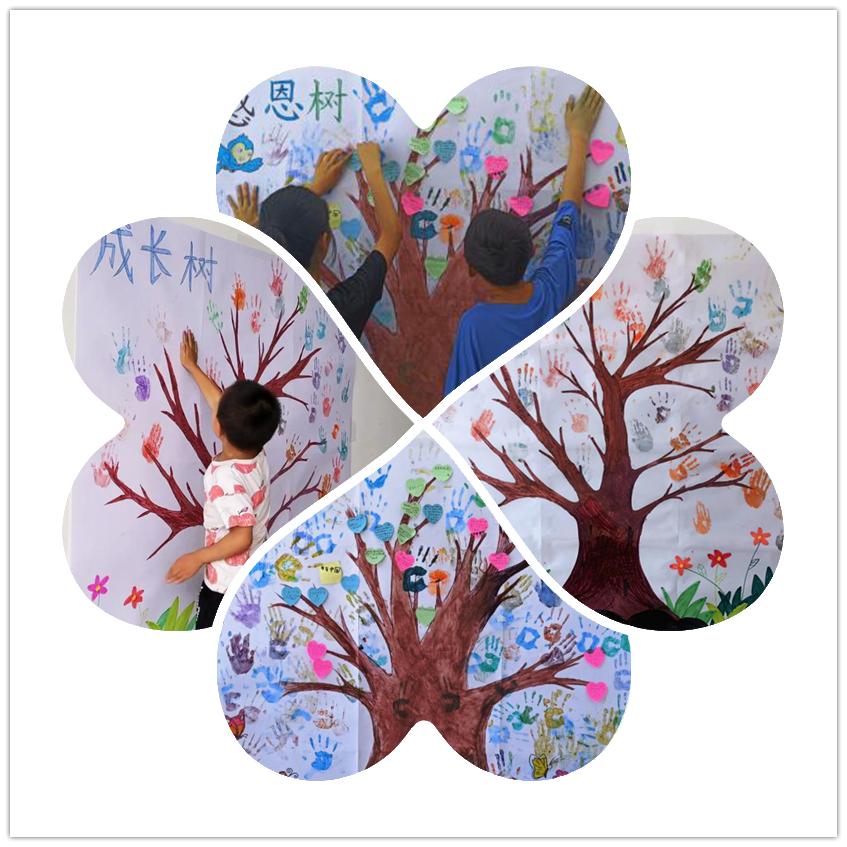 志愿者为孩子们亲手绘制成长树、感恩树。孩子们接过志愿者手中的五彩颜料,怀着对成长的渴望,努力的踮起脚尖,用自己的双手点缀图纸,播下希望的种子;怀着对生活的感恩,在便签纸上写下“悄悄话”,对志愿者和家长表达感谢,送上祝福;把对于成长的憧憬写在一张张便签纸上,扮做五彩斑斓的树叶,随着感恩树一起“茁壮成长”。