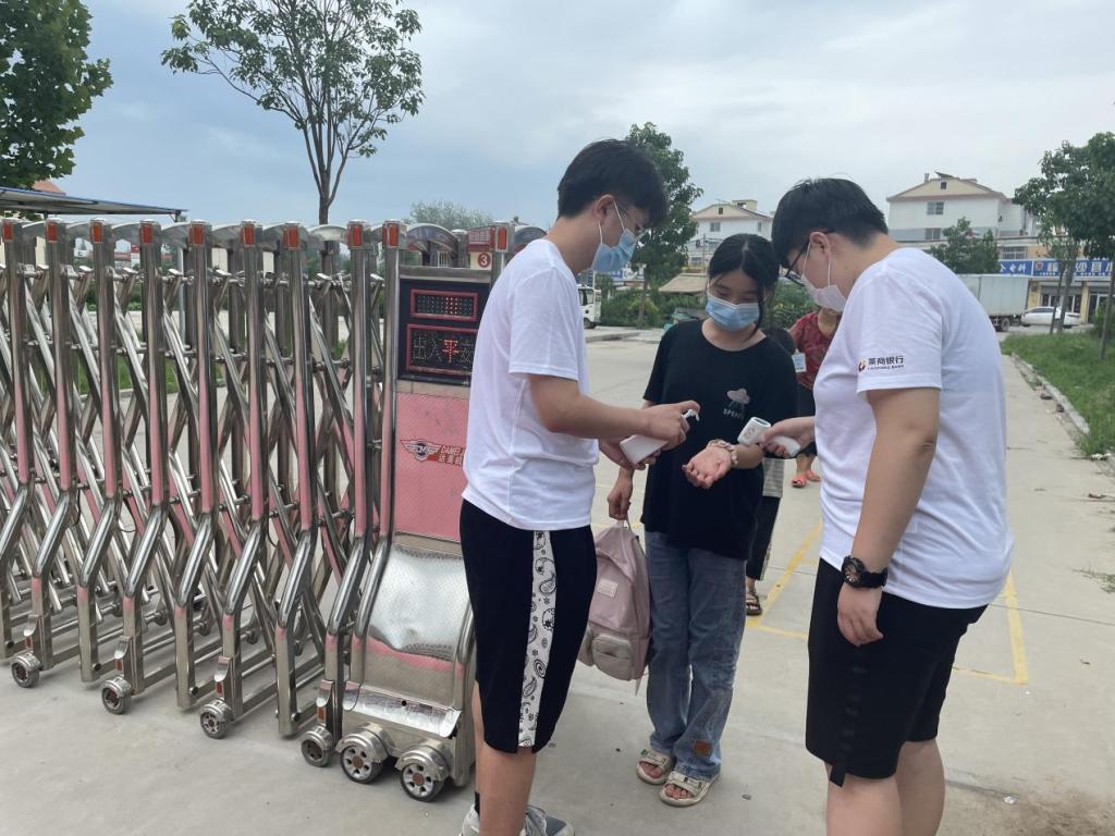 根据疫情防疫要求,在孩子们入校时对孩子们进行体温测量和消毒,以保证孩子们的安全。