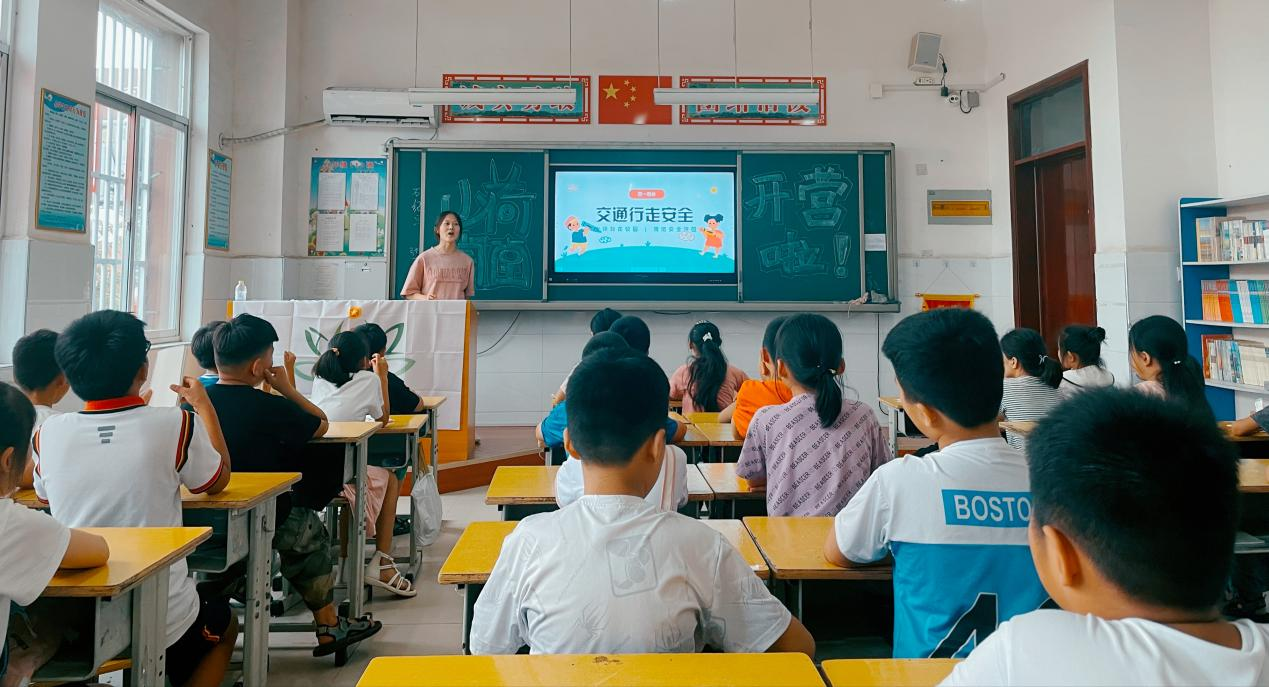 2022年7月13日,437ccm必赢国际官网青年志愿者协会青春行·中国梦暑期支教团小荷学堂的志愿者们在菏泽市鄄城县左营镇左南社区小学给孩子们开展了安全教育主题课程。