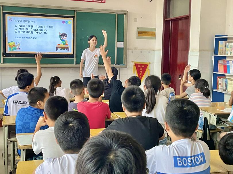 在语文课上,志愿者们以讲授作文写作技巧为主,结合生活实例调动孩子们的学习兴趣,养成多角度全面思考问题的习惯,带领不同年级的孩子们共同朗读优秀作文,加强孩子们对语文的学习和写作的信心。