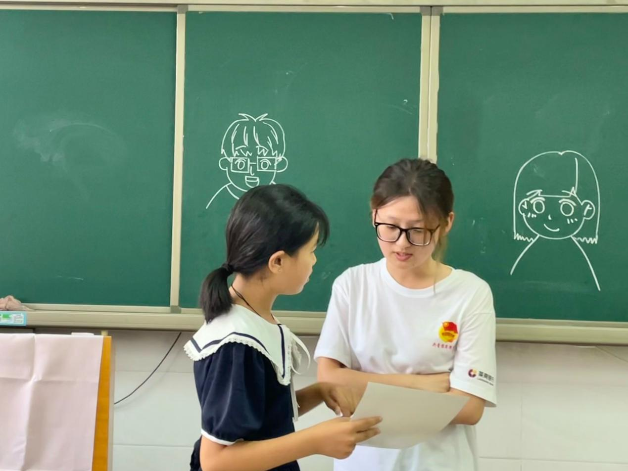 志愿者们引导孩子们大胆动手创作,使孩子们更直观地感受线条之美,课后及时与孩子们交流,解答疑惑。
