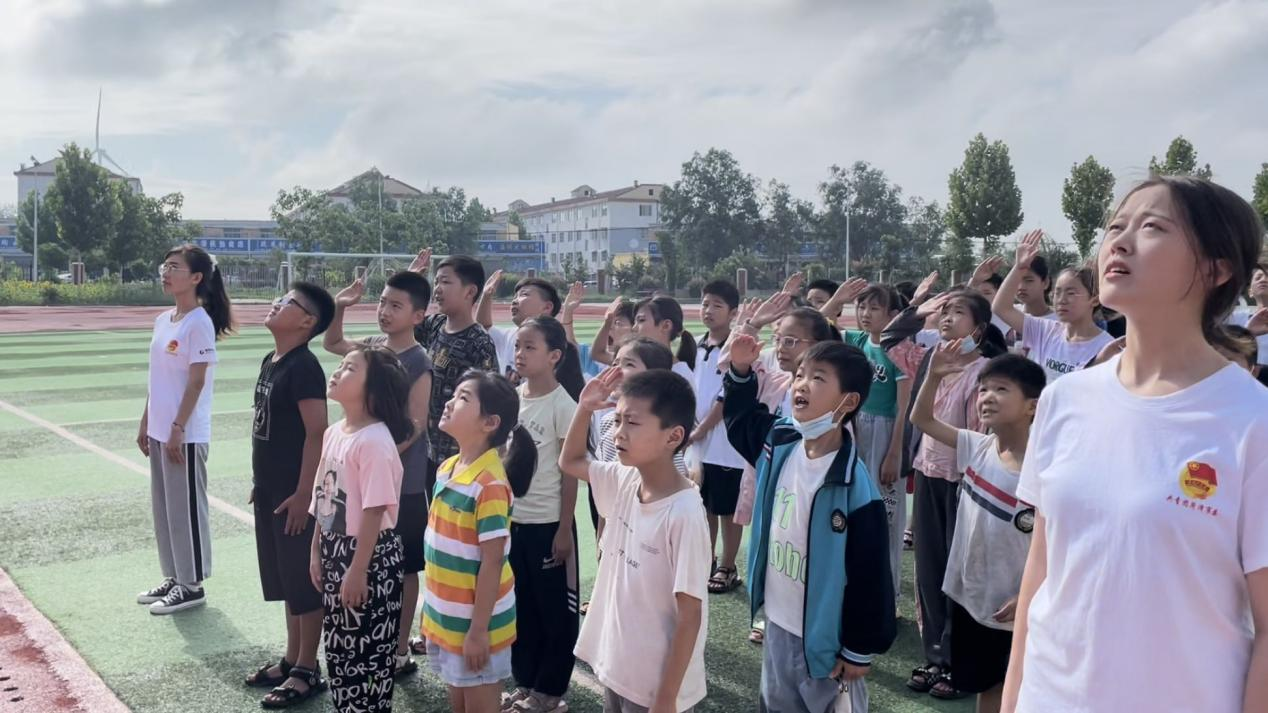 志愿者们在操场举行了隆重而庄严的升国旗仪式