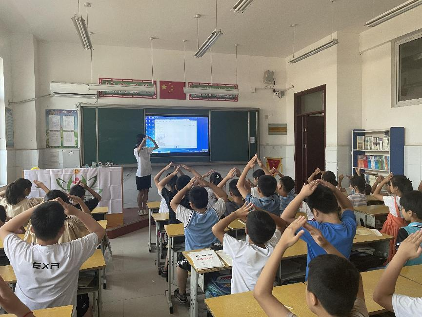 近期,437ccm必赢国际官网青年志愿者协会青春行·中国梦暑期支教团的志愿者们为菏泽市左营镇左南社区小学“小荷学堂”的孩子们开展了手语特色课程。