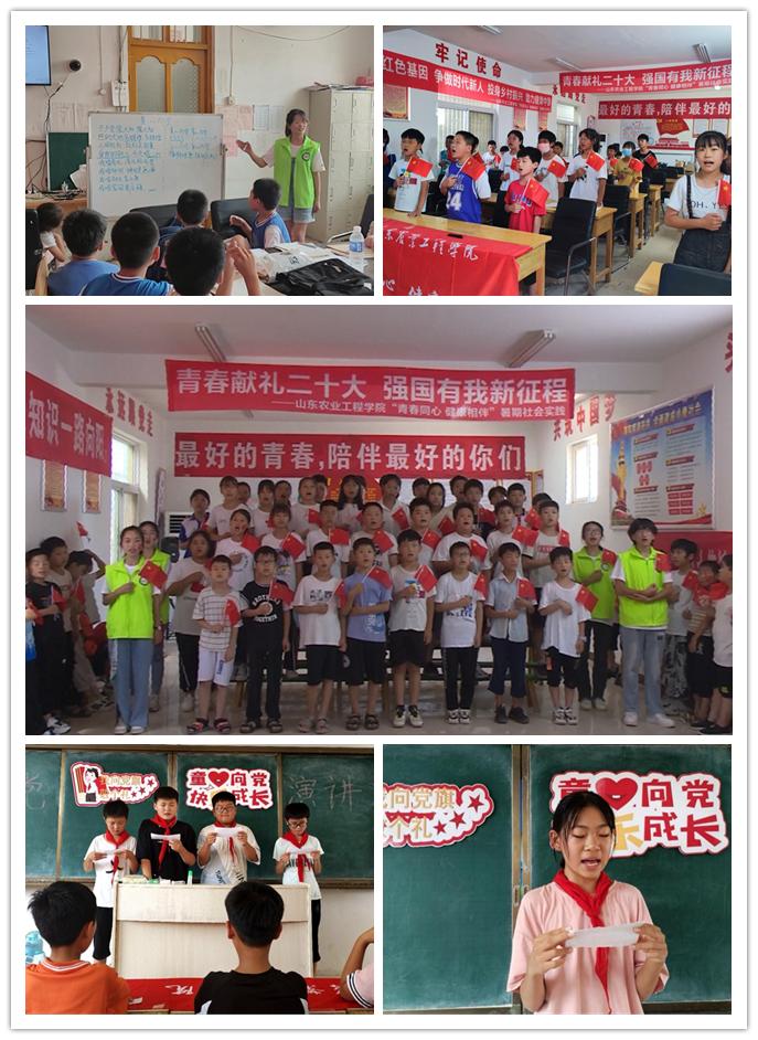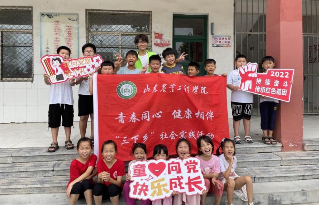 2022年7月下旬,437ccm必赢国际官网“青春同心·健康相伴”暑期社会实践团在菏泽市成武县九女集镇包庄村和郓城县水堡中心小学开展了以“青春献礼二十大 强国有我新征程”为主题的系列红色教育活动,汲取革命精神养分,赓续红色血脉,厚植文化底蕴,深入开展爱国主义教育,帮助当地儿童上好与现实相结合的“大思政课”,在社会课堂中“受教育、长才干、作贡献”,坚定不移听党话、跟党走,以实际行动和优异成绩迎接党的二十大胜利召开。
