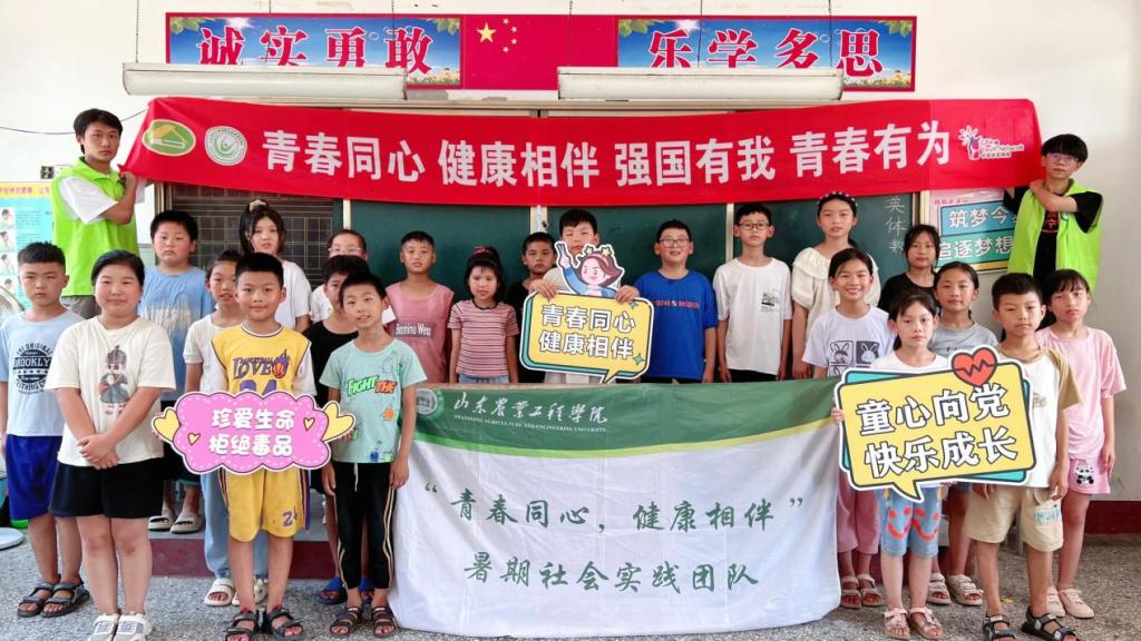 2023年7月26日,“青春同心,健康相伴”暑期社会实践团走进菏泽市九女集镇包庄小学,通过开展禁毒宣传教育活动,增强青少年禁毒、防毒意识,筑牢校园禁毒安全防线,护航青少年健康成长。