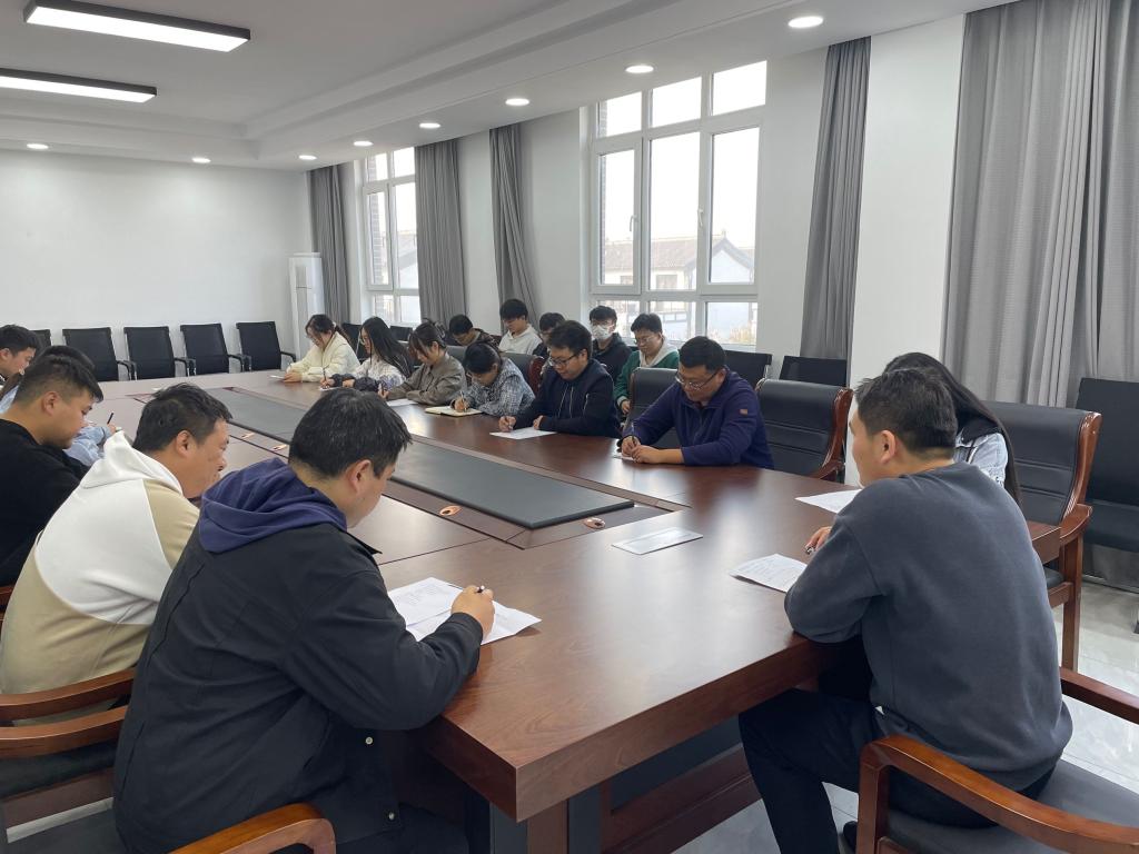 4月18日,经济管理学院农林经济管理(公费)专业焦庙镇实习生在焦庙镇郭窑社区认真学习党的二十大精神。