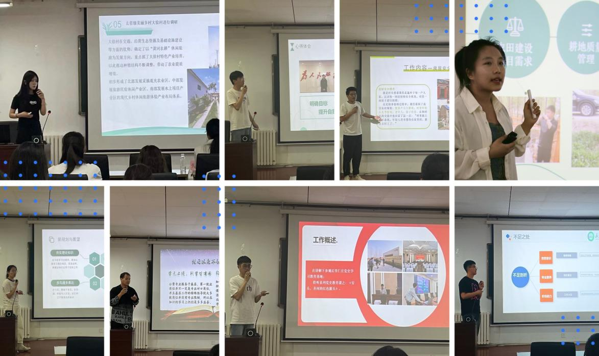 8位优秀学生代表分别从工作内容、收获与感悟、不足与展望等方面进行了展示,并提出了自己的宝贵建议。通过实习,他们不仅充分认识了基层工作环境,了解了当下农村真实现状,还深刻体会到了在学校认真学习专业科学理论知识、提高公文写作水平、熟练使用办公软件的重要性。