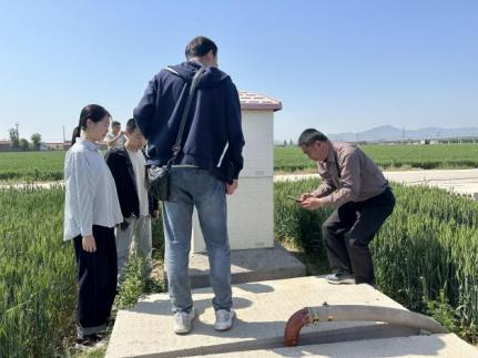 在沈家村,同学们配合区水利局工作人员查看高标准农田配套灌溉示范井情况,仔细检查示范井的外观结构、设备运行状态,并记录相关数据。通过全面检查发现,示范井整体运行良好,为高标准农田配套灌溉提供保障。