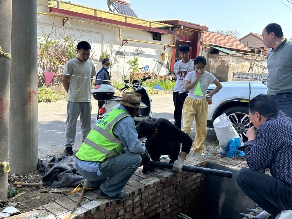 一行人来到隋家村,查看自来水管道安装情况。此前,隋家村长期以来依赖井水作为主要水源,但井水水质受地质条件、季节变化等多种因素影响,可能存在不稳定的情况,长期饮用可能对村民身体健康构成潜在威胁。为响应供水一体化政策,实现区域供水资源的优化整合,切实保障村民身体健康,维护村民基本生活权益,政府迅速响应、果断牵头,统筹协调各方资源,组织专业力量集体推进自来水管道铺设工程,保障村民后续的用水安全。