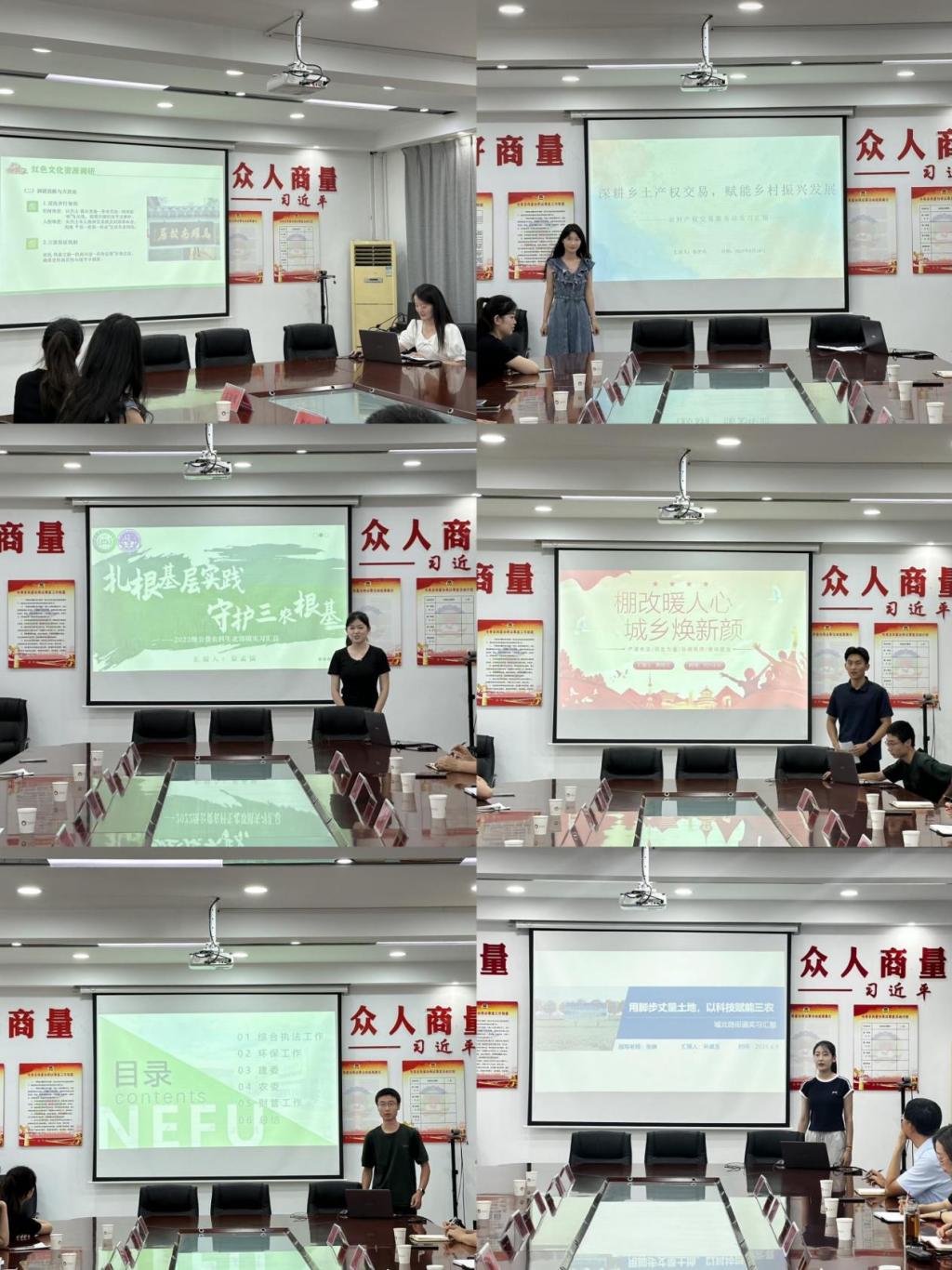 与会领导共同听取了来自区农业农村局农改中心、丝绸路街道、北郊镇、南郊镇、城北路街道实习学生的工作汇报。李翔宇、郭梦冉、慕孟儒、陶靖元、于文启、孙卓玉六名学生代表分别围绕红色文化遗址遗迹调研、农村产权交易实践、农村集体“三资”管理、棚改项目数据管理、综合执法工作内容与基层治理、社区服务与农业农村管理实践和心得体会进行汇报。