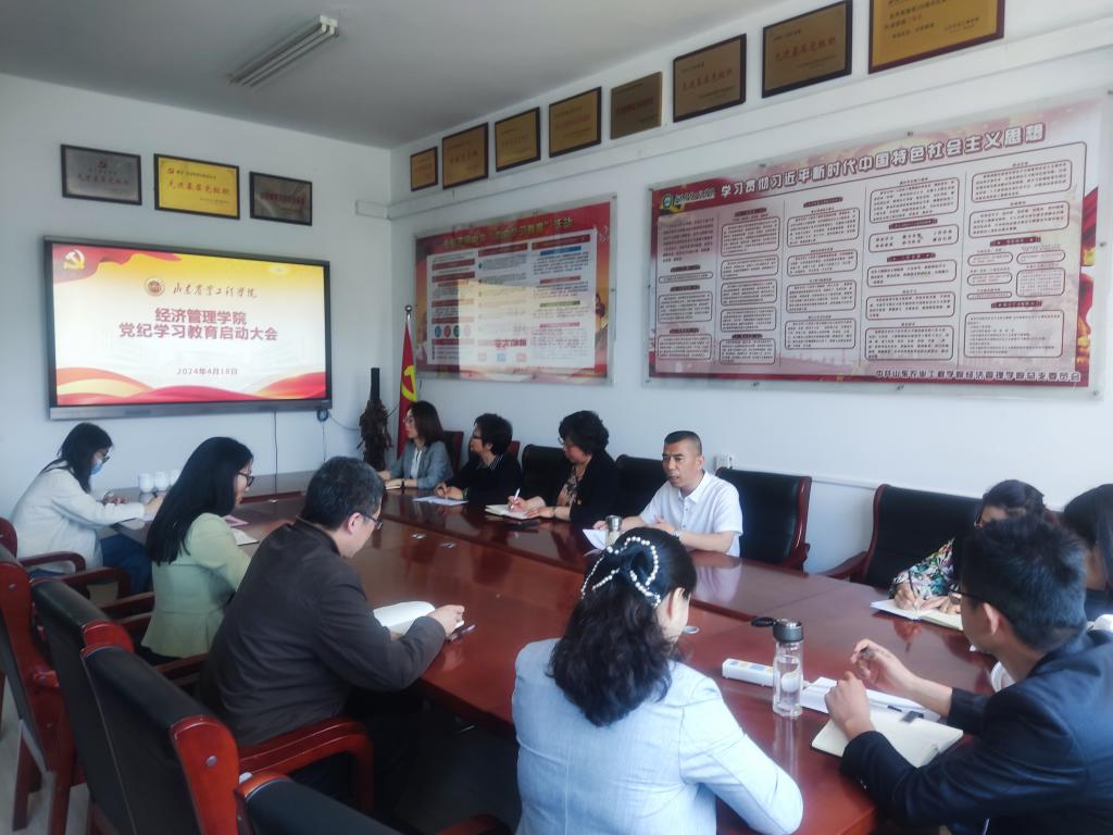 为进一步加强党员干部纪律建设,提高全院师生的党性修养和廉洁自律意识,根据学院要求,经济管理学院于2024年4月18日上午在济南校区党建办公室召开了党纪学习教育启动大会。大会由学院党总支书记马勇主持,党总支副书记、院长李百秀,副院长曲文俏,正处级组织员甄俊兰,各党支部书记、副书记、委员参加。