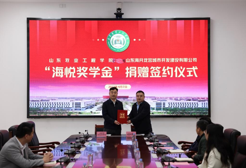 周吉鹏与王子科代表双方签订捐赠协议。王子科为学校捐赠人民币50万元整,用于设立“海悦奖学金”,支持激励和资助优秀大学生顺利完成学业,为社会培养更多优秀人才。