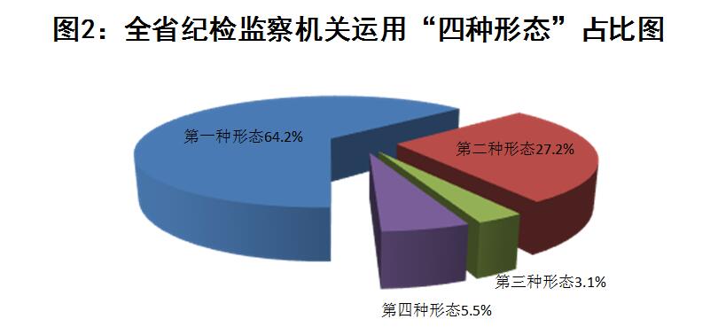 2022年第一季度,全省纪检监察机关运用“四种形态”批评教育帮助和处理共24889人次。其中,运用第一种形态批评教育帮助15968人次,占总人次的64.2%;运用第二种形态处理6769人次,占27.2%;运用第三种形态处理775人次,占3.1%;运用第四种形态处理1377人次,占5.5%。