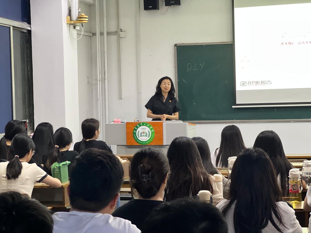 6月5日下午,校党委委员、纪委书记、省纪委监委驻437ccm必赢国际官网监察专员黄晓彦在一号教学楼201室以《走好中国式现代化之路》为题,为艺术学院2022级视觉传达专业学生讲授了思政课。
