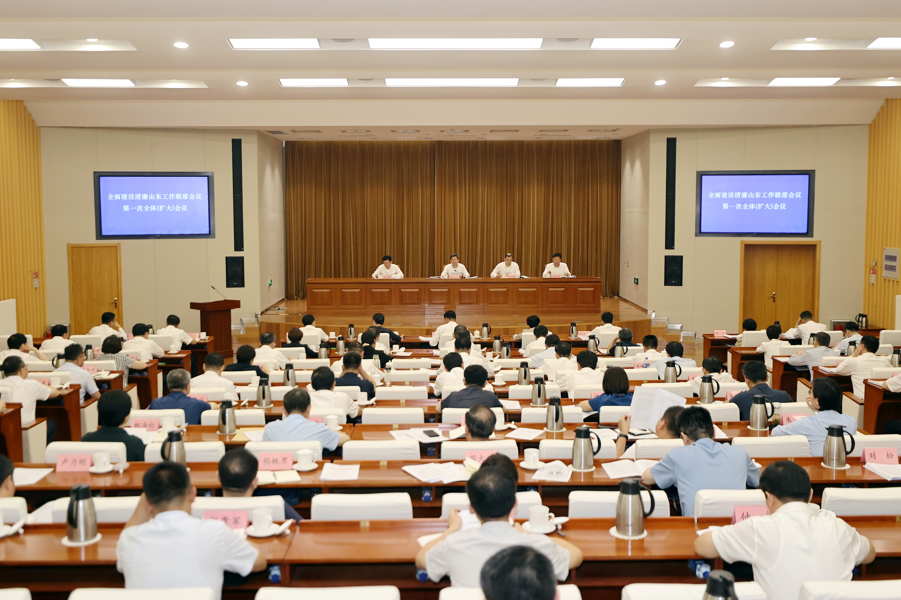 8月2日,全面建设清廉山东工作联席会议第一次全体(扩大)会议召开。会议认真学习贯彻党的二十届三中全会精神和习近平总书记关于党的自我革命的重要思想,深入落实习近平总书记视察山东重要讲话精神,按照林武书记在十二届省纪委三次全会上的讲话及《关于全面建设清廉山东的意见》要求,研究确定年度工作要点,安排部署下步重点任务,为全面推进清廉山东建设、营造良好政治生态夯实工作基础。全面建设清廉山东工作联席会议召集人,省委常委、省纪委书记、省监委主任夏红民出席会议并讲话。