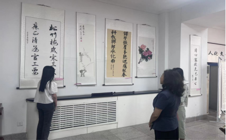 为深入开展学习贯彻习近平新时代中国特色社会主义思想主题教育,扎实推进我院廉政文化建设走实走深,5月23日至5月31日,人文学院书画组在必赢济南校区办公楼第二会议室成功举办“翰墨书廉洁,丹青绘清风”廉洁文化美术书法作品展。校党委委员、纪委书记黄晓彦,纪委副书记张凌等领导一行莅临现场参观指导,人文学院领导班子就我院廉洁文化建设情况进行了介绍。