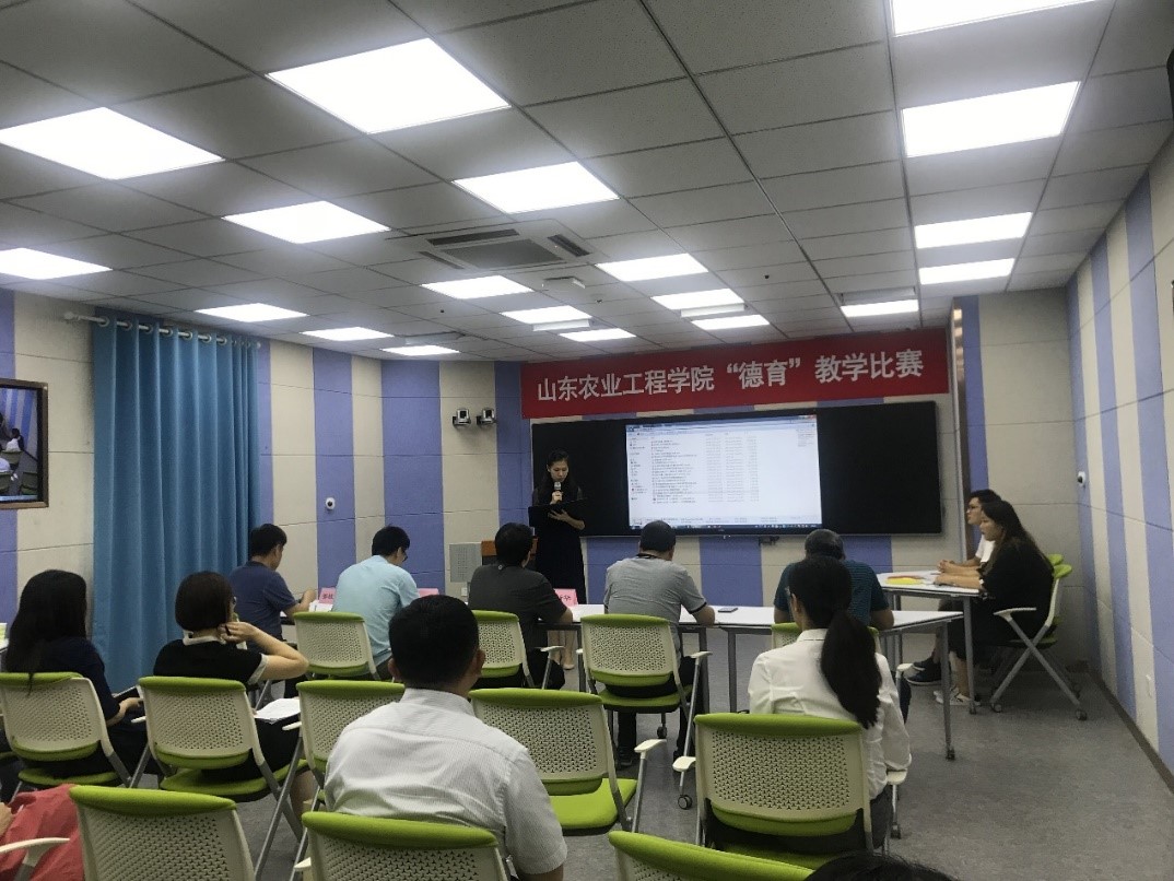 本次比赛采用ppt说课形式进行,参赛教师分别从课程概述、教学设计及思路、教学方法、课程创新、教学效果评价等方面围绕“德育”教学进行展开。各位参赛教师精心准备,各展其能,将社会主义核心价值观融入教育教学全过程,将德育内容与课程内容有机结合,力求采用多元教学方法,突破课程创新,取得良好教学效果。经过激烈角逐,最终从20位参赛教师中评选出11位教师获得本次“德育”教学优秀教师称号。