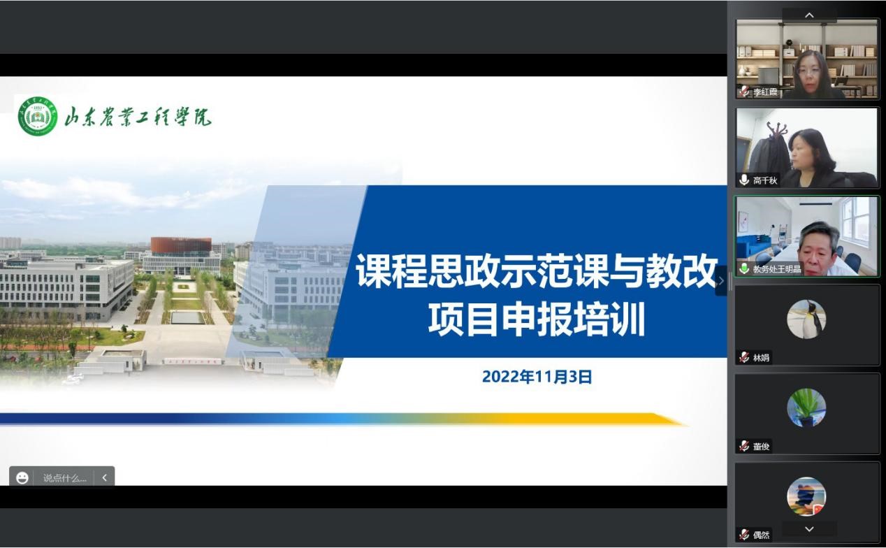为进一步加强教学研究,深入推进课程思政教育教学改革,切实提高必赢课程思政示范项目和教学改革研究项目的申报质量,2022年11月3日,必赢特邀请齐鲁工业大学(山东省科学院)课程思政研究院常务副院长李红霞举办了“课程思政示范课程建设与申报”专题培训。本次培训采用线上形式进行,由教务处处长王明晶主持,一百余名教师参与了线上学习。
