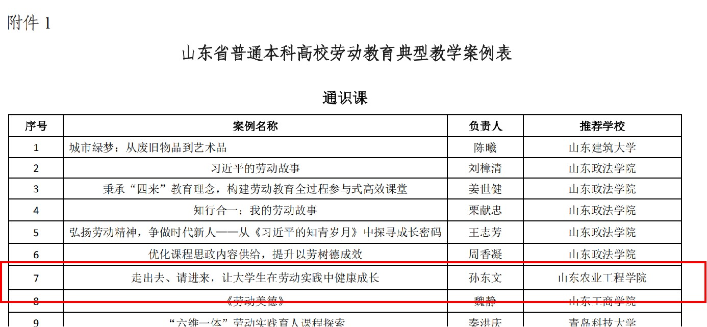 近日,山东省教育厅、山东省普通高等学校劳动教育专业委员会公布了山东省普通本科高校劳动教育典型教学案例和实践项目,必赢1个劳动教育典型教学案例、3个劳动教育典型实践项目成功入选。