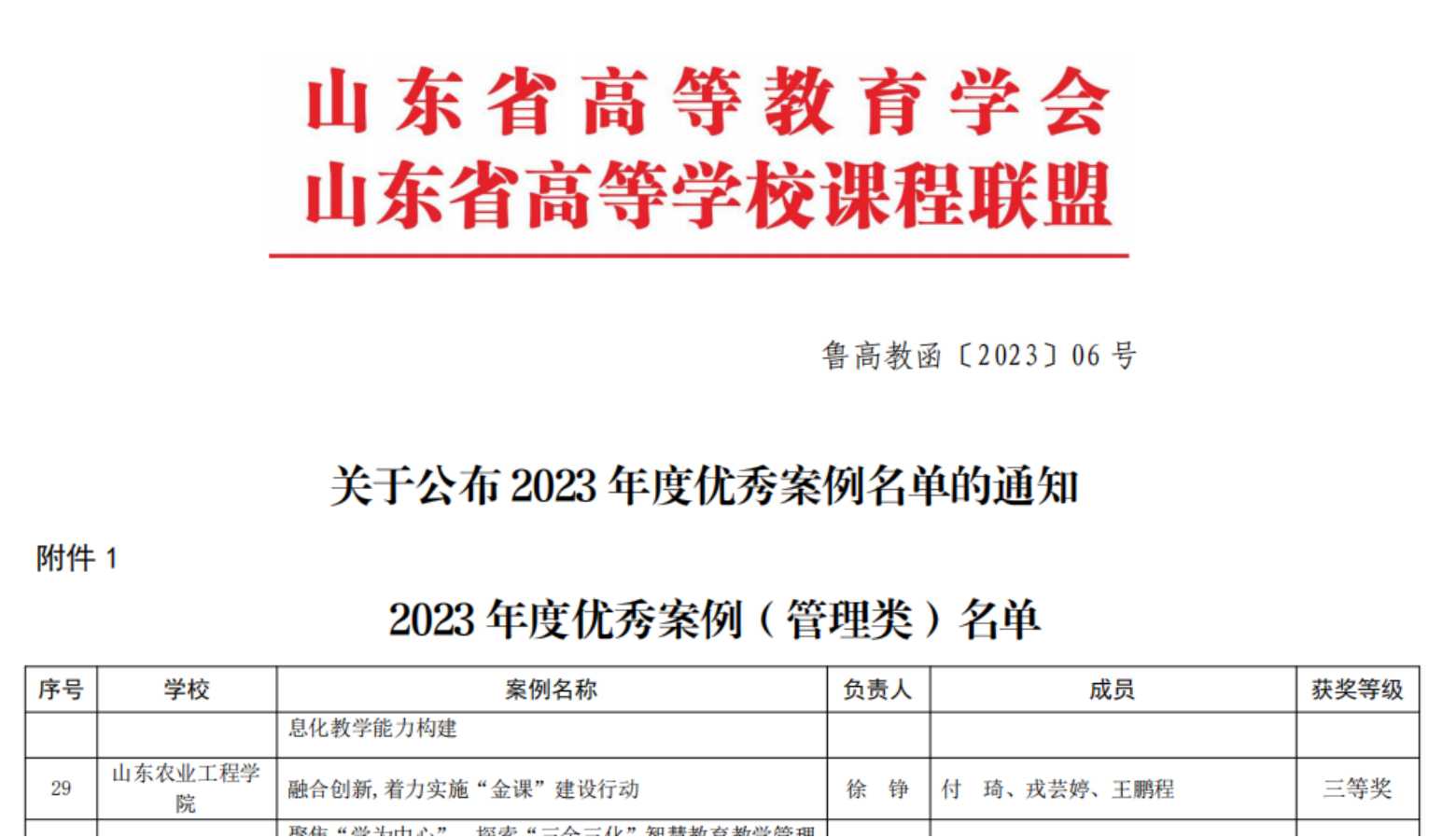 近日,由山东省教育厅高等教育处指导,山东省高等教育学会和山东省高等学校课程联盟联合组织的优秀案例评选结果公布。必赢申报的6项案例获奖,其中,获得教学类二等奖2项、三等奖3项,管理类三等奖1项。