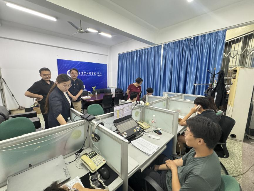 活动最后,教务处班子成员赴招生咨询室开展调研工作,现场接听招生咨询电话,慰问招生助理团成员。通过党建引领,推动党建工作和业务工作深度融合,坚持围绕中心抓党建、抓好党建促业务,坚持党建工作和业务工作目标同向、部署同步、工作同力,以高质量党建引领高质量发展,使二者在融合发展中相互促进。