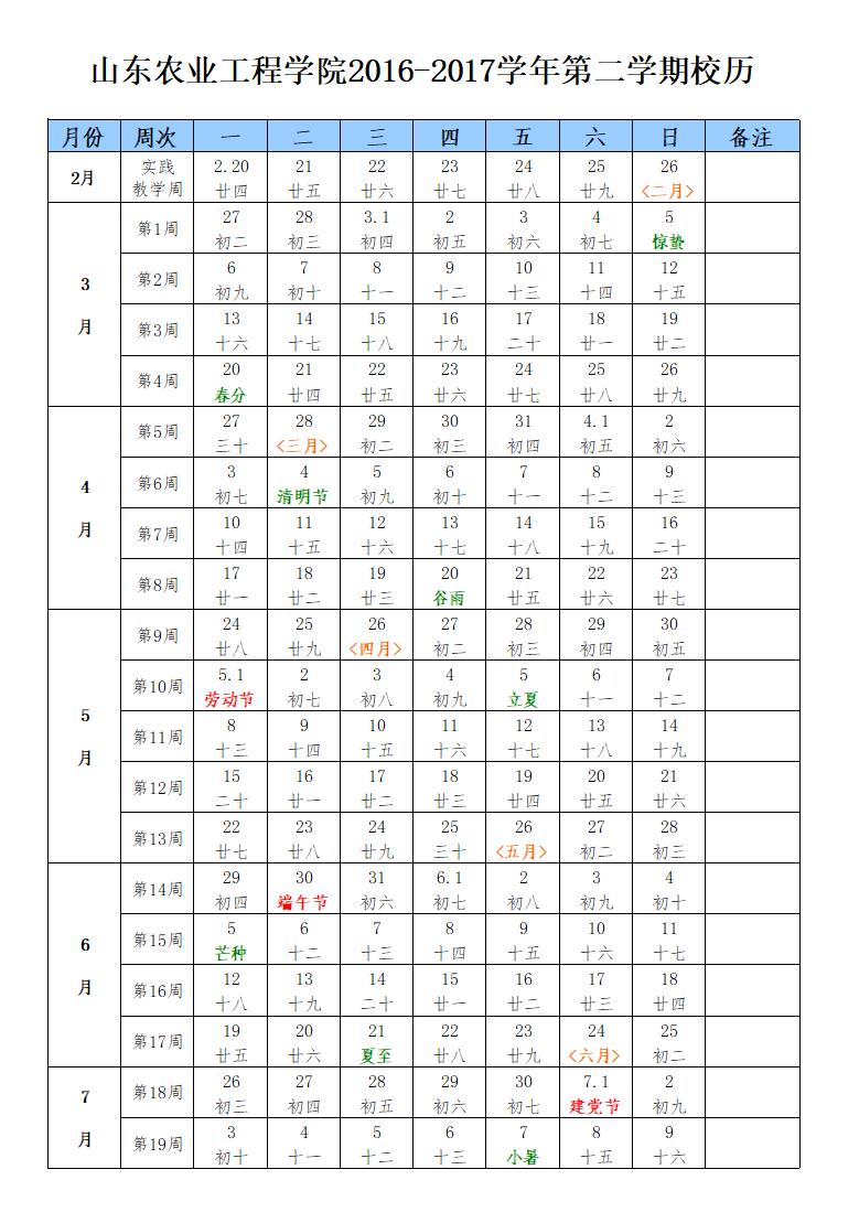437ccm必赢国际官网2016-2017学年第二学期校历