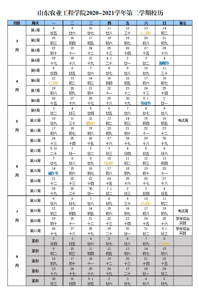 437ccm必赢国际官网2020-2021学年第二学期校历