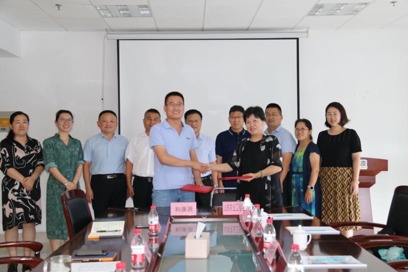 双方共同签订《教学科研实践基地合作协议》。副校长杨振宁与和康源集团董事长孟庆利共同为基地揭牌。