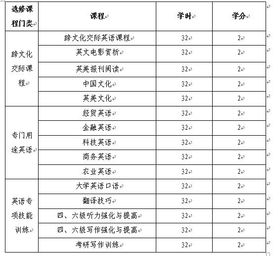 备注:根据学校每年的教学日历和学生的实际需求,选修课程会逐年拓展和延伸。
