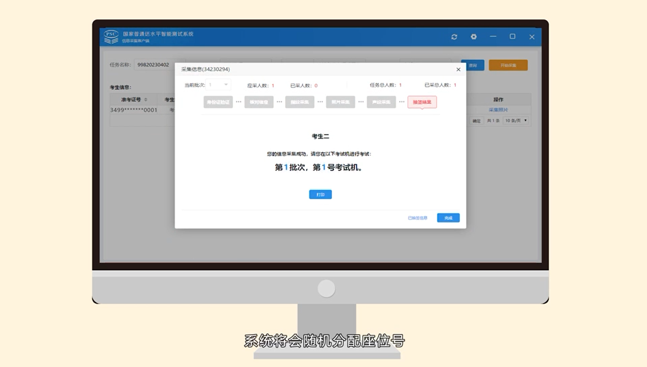 系统随机自动分配机器号给应试人,应试人需记住自己的考试机号。