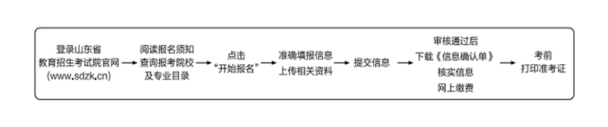 (一)成人高考报名继续实行网上报名与现场确认相结合的形式,网上报名时间及招生专业均以山东省教育招生考试院的通告为准。考生可随时关注山东省教育招生院网站(http://www.sdzk.cn/)有关成考报名信息(往年大约在8月中、下旬),及时了解成考报名通知,以便掌握网上报名和现场确认的具体时间。
