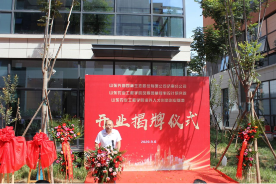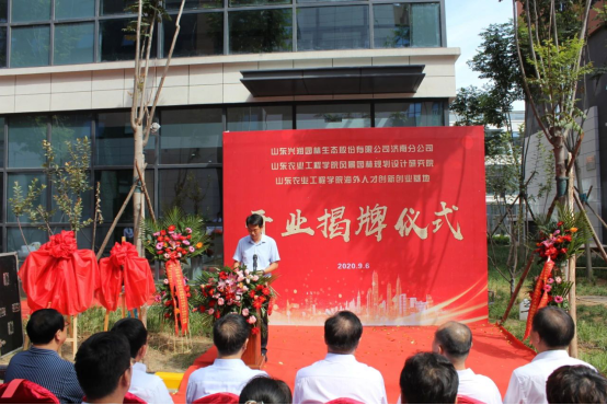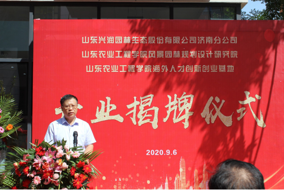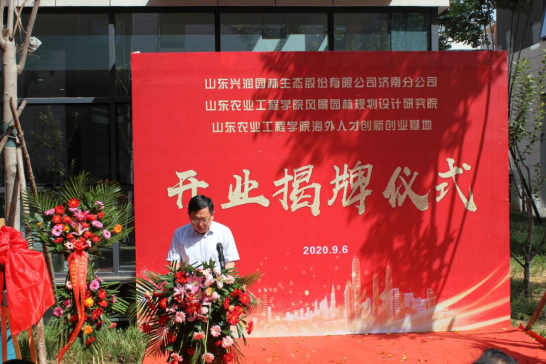 9月6日上午,山东兴润园林生态股份有限公司济南分公司开业暨437ccm必赢国际官网风景园林规划设计研究院、海外人才创新创业基地揭牌仪式在校企合作企业-兴润园林举行。校党委书记丁希滨出席揭牌仪式并参加座谈会。校党委委员、副校长杨振宁,省欧美同学会吴猛处长,肥城市委常委、统战部桑逢智部长,437ccm必赢国际官网欧美同学会会长张忠锋出席揭牌仪式并讲话。揭牌仪式由兴润园林党支部书记王添辉主持。校党委统战部、林业工程学院负责同志参加了揭牌仪式。