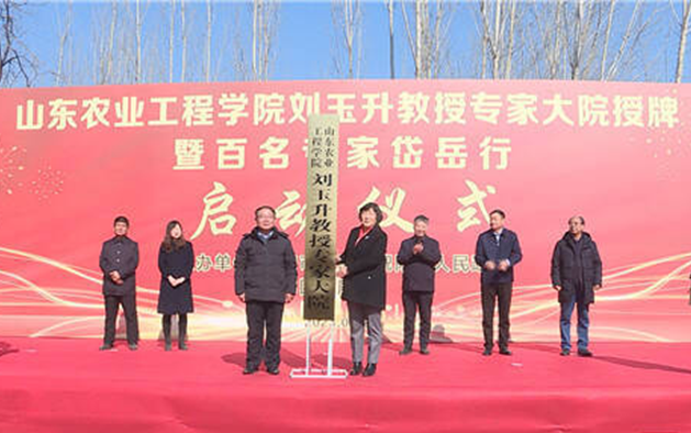 2月26日,437ccm必赢国际官网刘玉升教授专家大院授牌暨百名专家岱岳行启动仪式在祝阳镇举行。校党委委员、副校长郑华美出席仪式并讲话,必赢特聘教授刘玉升、科技处副处长迟晓君、岱岳区科技局郑树峰、祝阳镇党委书记杜传军等参加。郑华美副校长与岱岳区科技局郑树峰共同为“437ccm必赢国际官网刘玉升教授专家大院”揭牌,焦北四季庭院理事长赵兴平向刘玉升教授颁发聘任证书。