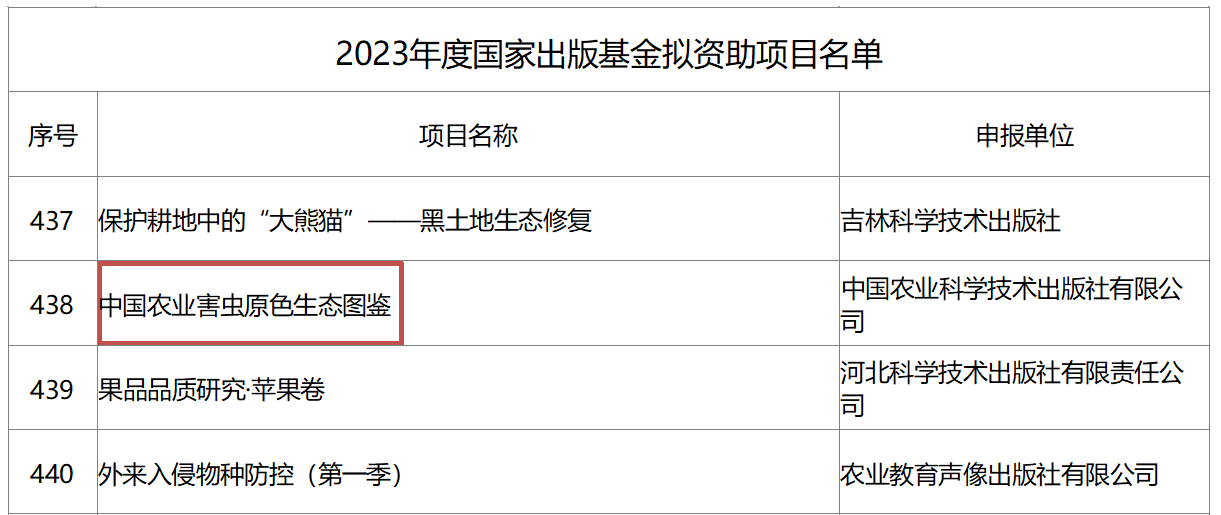 2023年4月17日,国家科学技术学术著作出版基金委员会公布了2023年度国家科学技术学术著作出版基金资助项目,必赢特聘教授刘玉升主编的学术著作《中国农业害虫原色生态图鉴》获批。此前,刘玉升教授主编的学术著作《中国资源昆虫图志》和《资源昆虫的生态化应用与展望》也均获国家出版基金资助项目,这是必赢在出版学术著作方面的历史性突破。