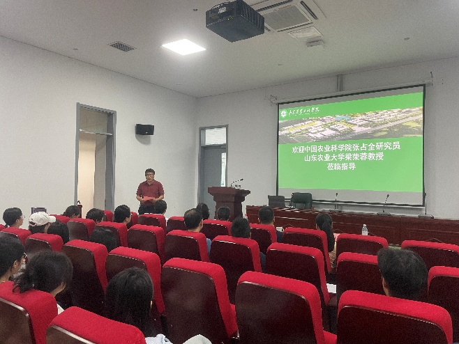 本次沙龙以“农产品产后品质绿色控制技术”为主题,聚焦现代农产品采后绿色贮藏加工技术应用,汇聚行业专家与校内学者共话科技前沿,助力青年教师拓宽学术视野,提升创新能力。特邀中国农业科学院蔬菜花卉研究所张占全研究员、山东农业大学食品科学与工程学院梁荣蓉教授作专题报告。农产品绿色流通及加工减损增效技术创新研究中心人员及相关专业的80余位师生参加了此次交流活动。会议由食品科学与工程学院院长于克学主持。