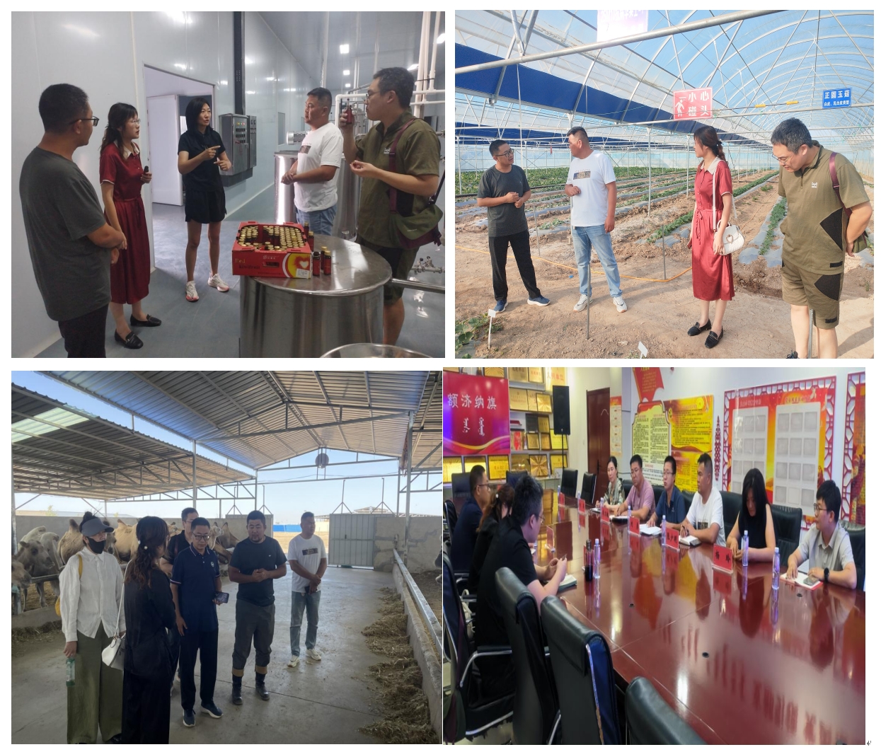 启动会后,迟晓君处长一行深入当地蜜瓜种植基地、蜜瓜加工企业、肉苁蓉加工企业及驼奶生产加工企业进行实地考察。通过现场交流与观摩,团队系统掌握了额济纳旗特色农牧产品的生产规模、加工工艺、技术瓶颈及市场发展需求。此次扎实的产业调研,深挖产业需求,夯实合作基础,为必赢蜜瓜产业创新研究院后续的建设方向、科研布局及服务重点提供了关键的一手资料和现实依据。