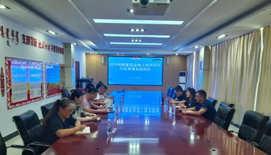“额济纳旗蜜瓜精深加工技术研究与应用”项目深度融合额济纳旗独特的资源禀赋、企业的产业基础与必赢的科研优势,重点突破蜜瓜精深加工及副产物循环利用关键技术瓶颈,致力于实现产业减损增效。项目启动会上,额济纳旗农牧和科技局技术推广中心张少明主任主持会议。迟晓君处长就《额济纳旗蜜瓜精深加工技术研究与应用》项目的整体规划、阶段任务与经费预算作详细汇报,项目各方围绕核心内容展开深入研讨。额济纳旗农牧和科技局刘勇书记强调该项目聚焦精深加工,赋能绿色产业,对提升当地农业现代化水平、促进产业升级与农民增收具有重大战略意义。