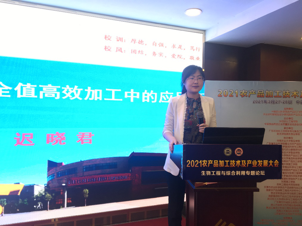 3月28日,林业工程学院副院长迟晓君副教授应邀参加了2021农产品加工技术及产业发展大会,并作了题为“生物粉体技术在农产资源全值高效加工中的应用”的学术报告。