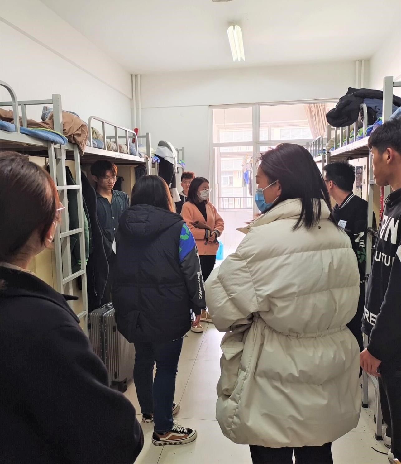 林业工程学院书记,辅导员老师多次带队到各学生宿舍走访慰问,了解同学们近期学习生活情况,叮嘱同学们严格按照学校疫情防控的相关要求,加强自我防护、做好个人卫生,最大限度满足学生的学习和生活需求,带去了党组织的殷切关怀。