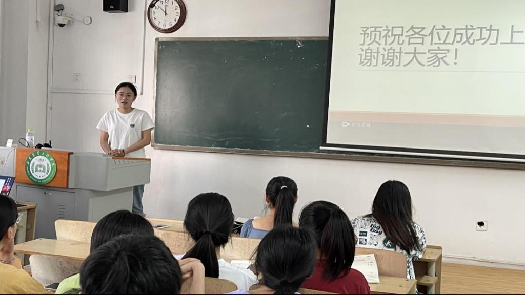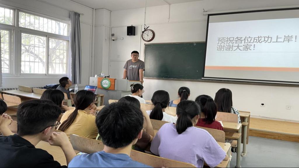 毕业生代表认真准备,从考研择校、初试准备、复试准备等多方面与学弟学妹们进行交流。同学们认真听取和记录,并就一些问题和疑虑向学长学姐们提问。毕业生代表的回答,帮同学们解决疑问、打消顾虑。最后毕业生代表为学弟学妹们送上真挚祝福,预祝大家都能成功上岸。