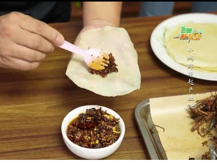 蚂蚱养殖技术成熟了,但是产业的可持续发展、产业融合应该怎么走,张大鹏开始了严谨的思考和论证,他们团队的专家们经过大量调研论证后,提供了一条因地制宜的思路——即大力开发蚂蚱食品,油炸蚂蚱、蚂蚱串、蚂蚱酱等产品一经上市,受到了广大消费者的好评。到2022年底,蚂蚱产业预计辐射带动2万个养殖户,增加收入3000万元。