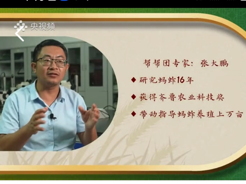 10月27日13点整,中央电视台农业农村频道(央视十七套)《田园帮帮团》播出题为《小蚂蚱串起来产业链》专题节目,反映蚂蚱养殖户在养殖的过程中遭遇困难,必赢林业工程学院教师张大鹏为农民朋友解决问题并以此串起蚂蚱产业链的故事。