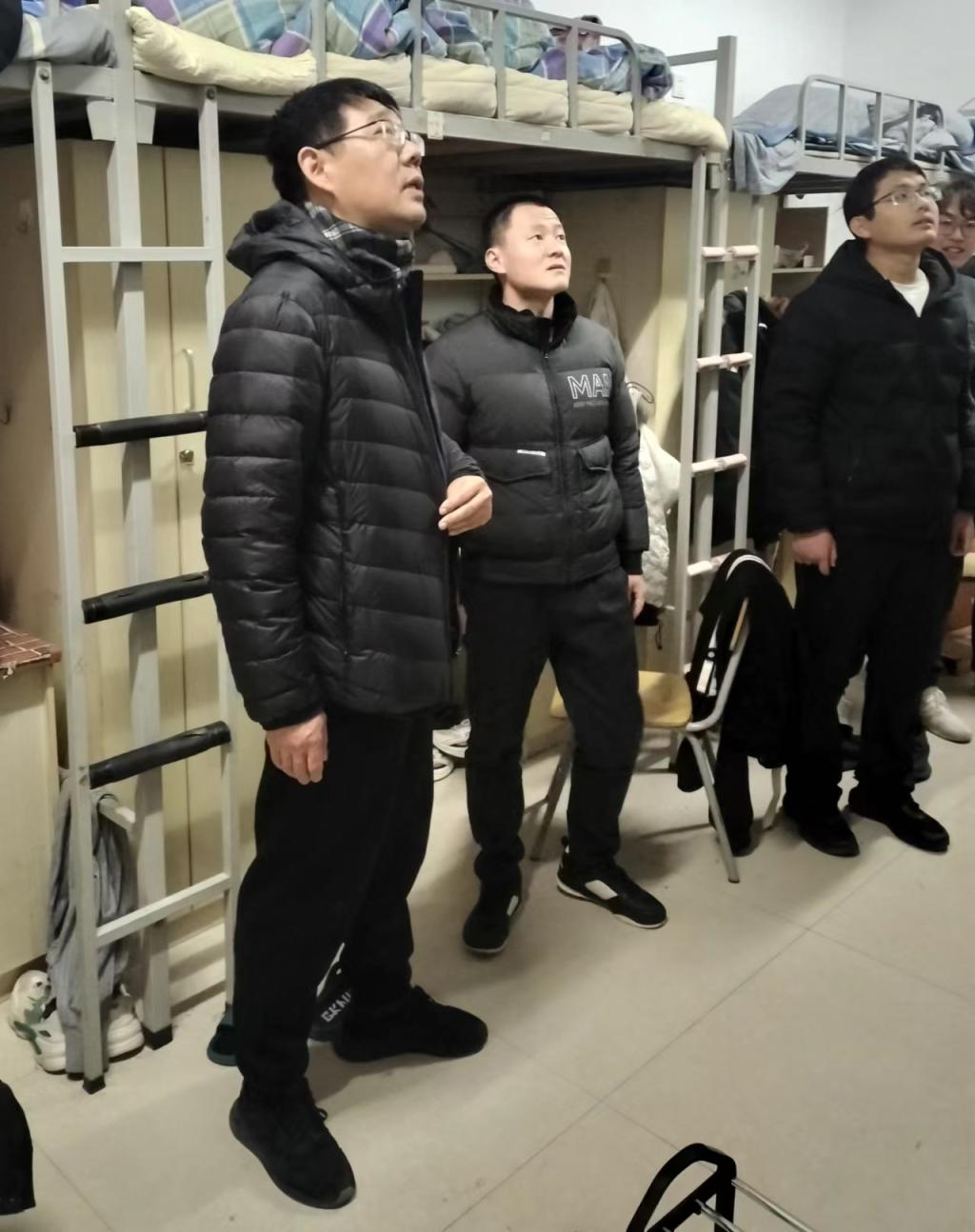 走访过程中,赵阳详细询问了同学们近期的学习生活情况并倾听同学们的意见和需求,希望同学们能够志存高远、脚踏实地、努力学习、报效国家。同时,他嘱托同学们在生活和学习上有任何问题要第一时间向辅导员老师反映,并提醒同学们要增强防火防盗意识,注意用电安全,增强安全防范意识。最后,他叮嘱同学们要注意防寒保暖、定期开窗通风,保持宿舍环境整洁,预防流感。
