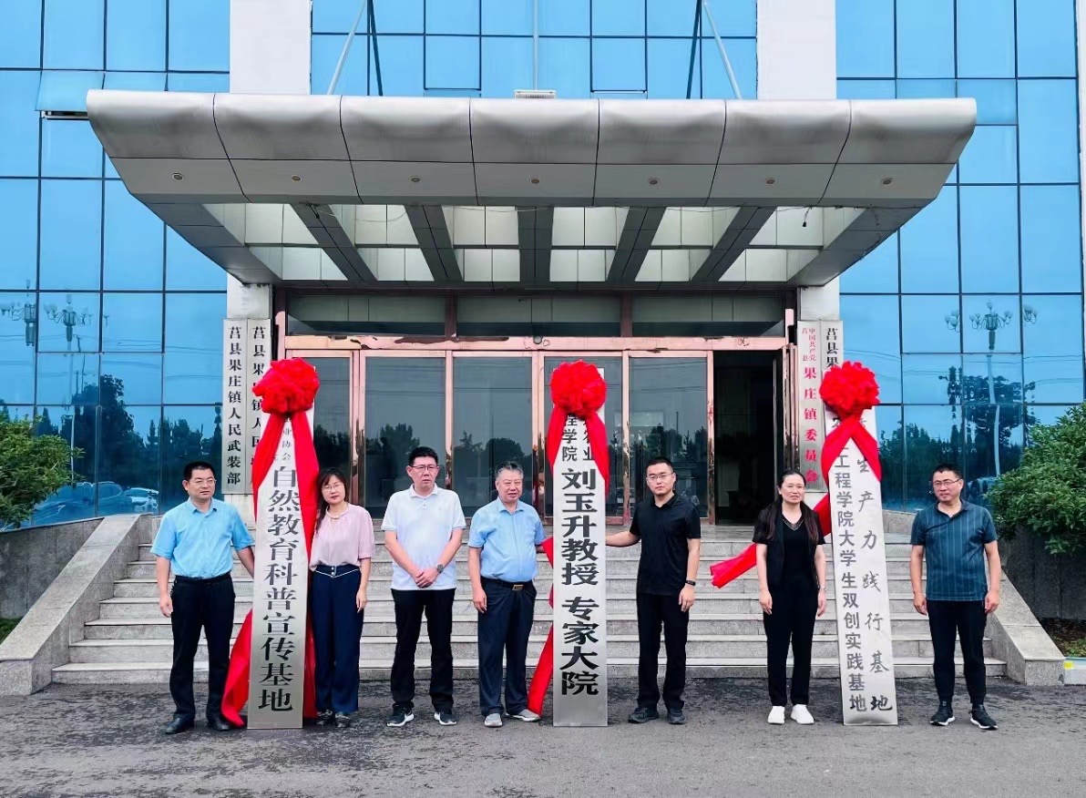 论坛结束后,举行了揭牌仪式,刘玉升教授、赵阳书记、迟晓君处长与日照市相关领导共同为刘玉升教授专家大院、自然教育科普宣传基地和437ccm必赢国际官网大学生双创实践基地暨新质生产力践行基地揭牌。