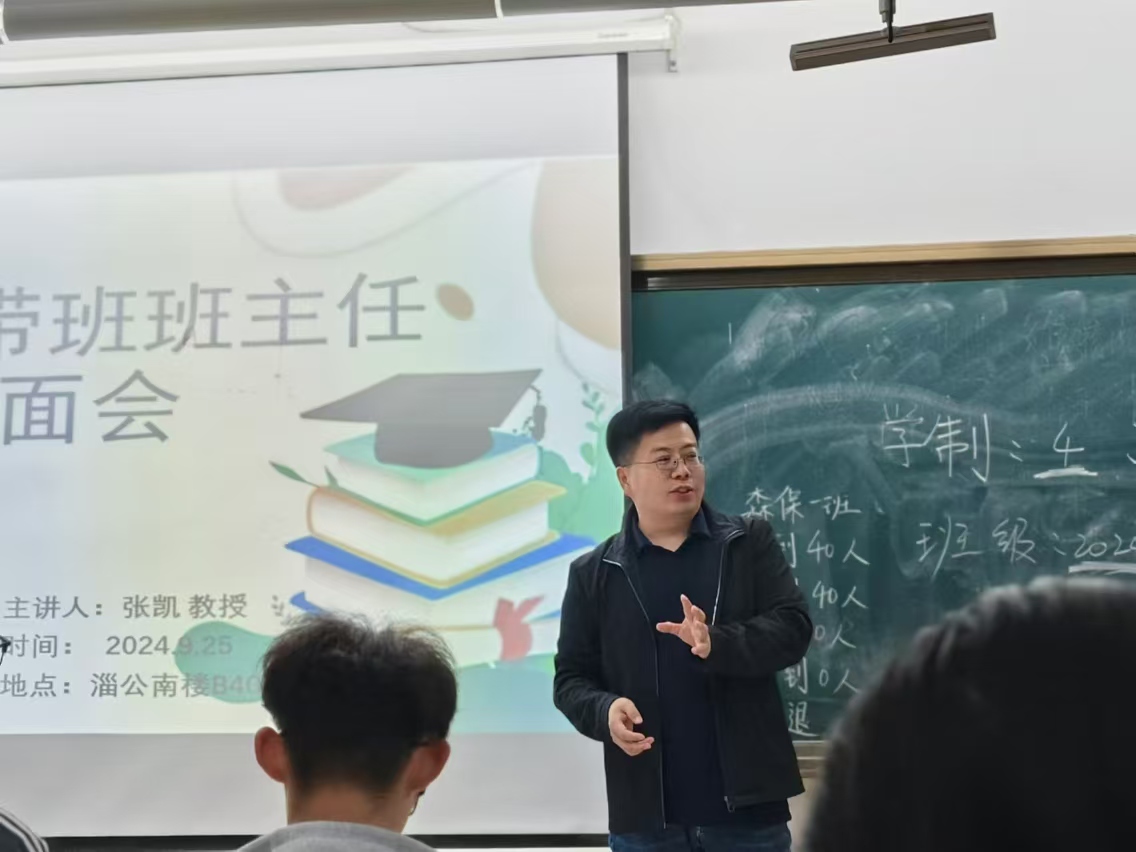 为扎实推进新生教育工作,充分发挥专业教师在学生培养中的引导作用。9月25日,我院森林保护专业教研室主任张凯教授于淄公南A403召开新生见面会。