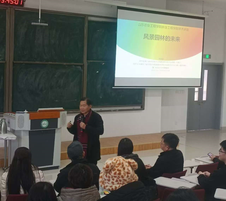 12月26日下午,第八届国务院学位委员会风景园林学科评议组第一召集人、同济大学建筑与城市规划学院风景园林学科专业委员会主任刘滨谊教授在必赢淄博校区公共北教学楼B202报告厅,以“风景园林的未来”为主题为必赢师生们做了一场精彩绝伦的学术报告。报告由林业工程学院院长束靖主持,学校相关专业师生到场聆听。