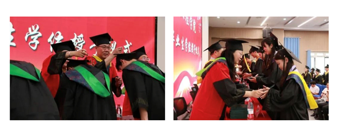 随后,束靖院长宣读了本届本科毕业生学位授予决议。院学位评定委员会主任束靖,副主任赵阳、牛贞福及成员王鹏、刘锦、李杰、陈春利、韩凤英依次为获得学士学位的毕业生授予学位并拨穗,象征着学子们正式完成学业,迈向新征程。